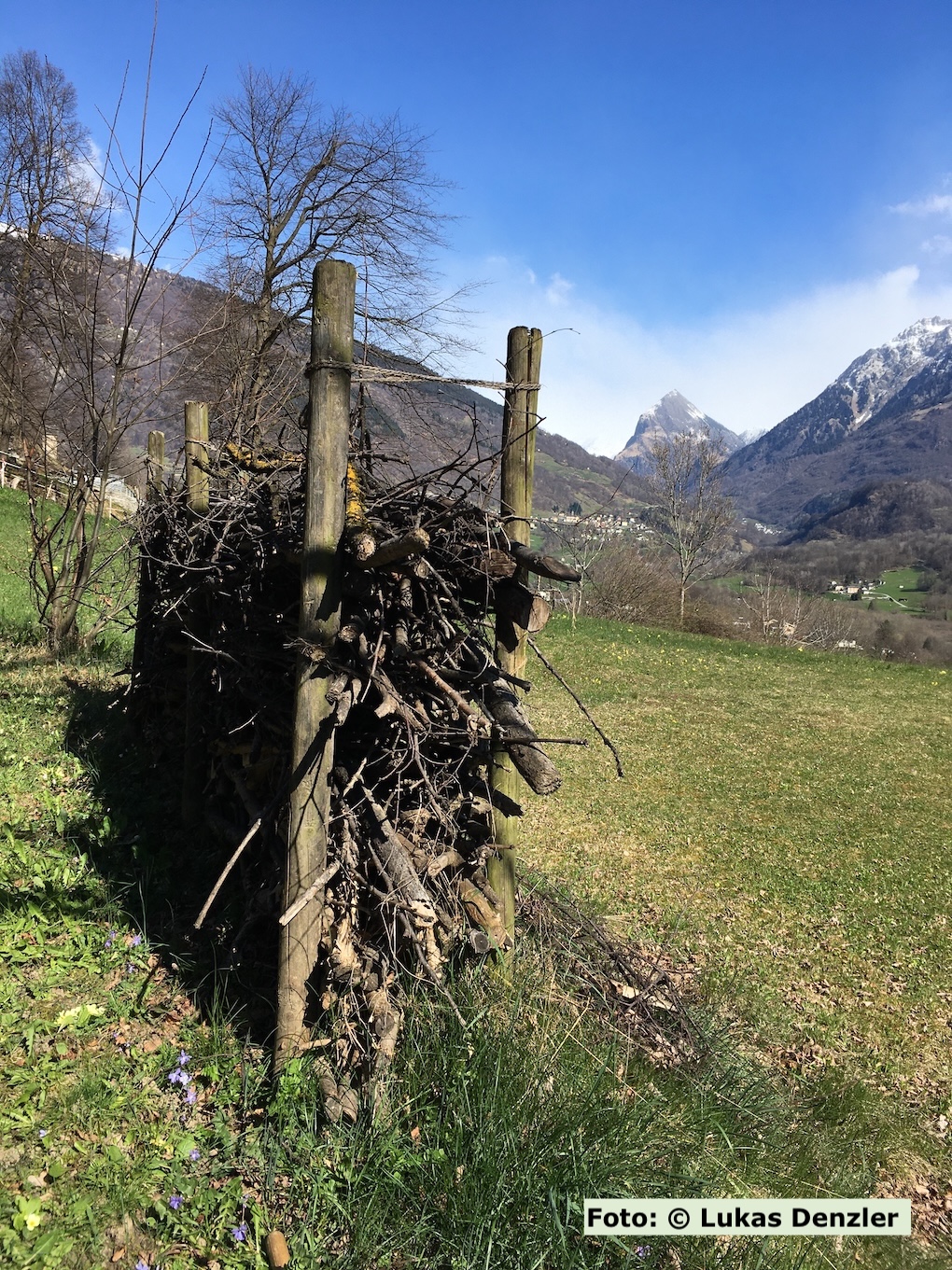 Initiative im Bleniotal bei Aquarossa TI – Aufgeschichtete Zweige als Lebensraum für Tiere – Foto