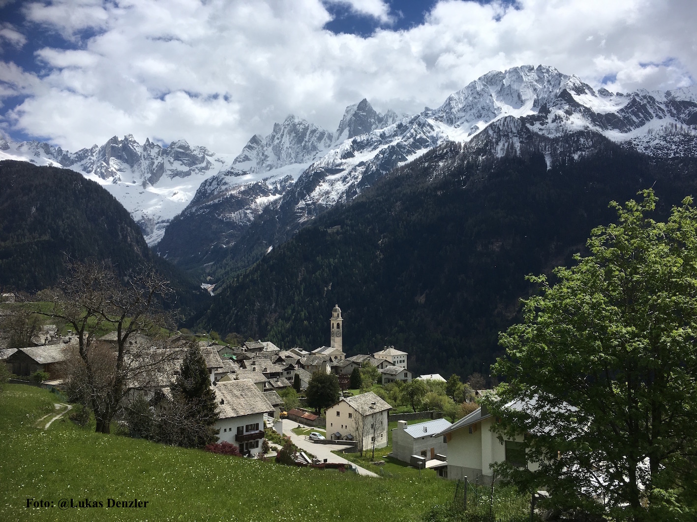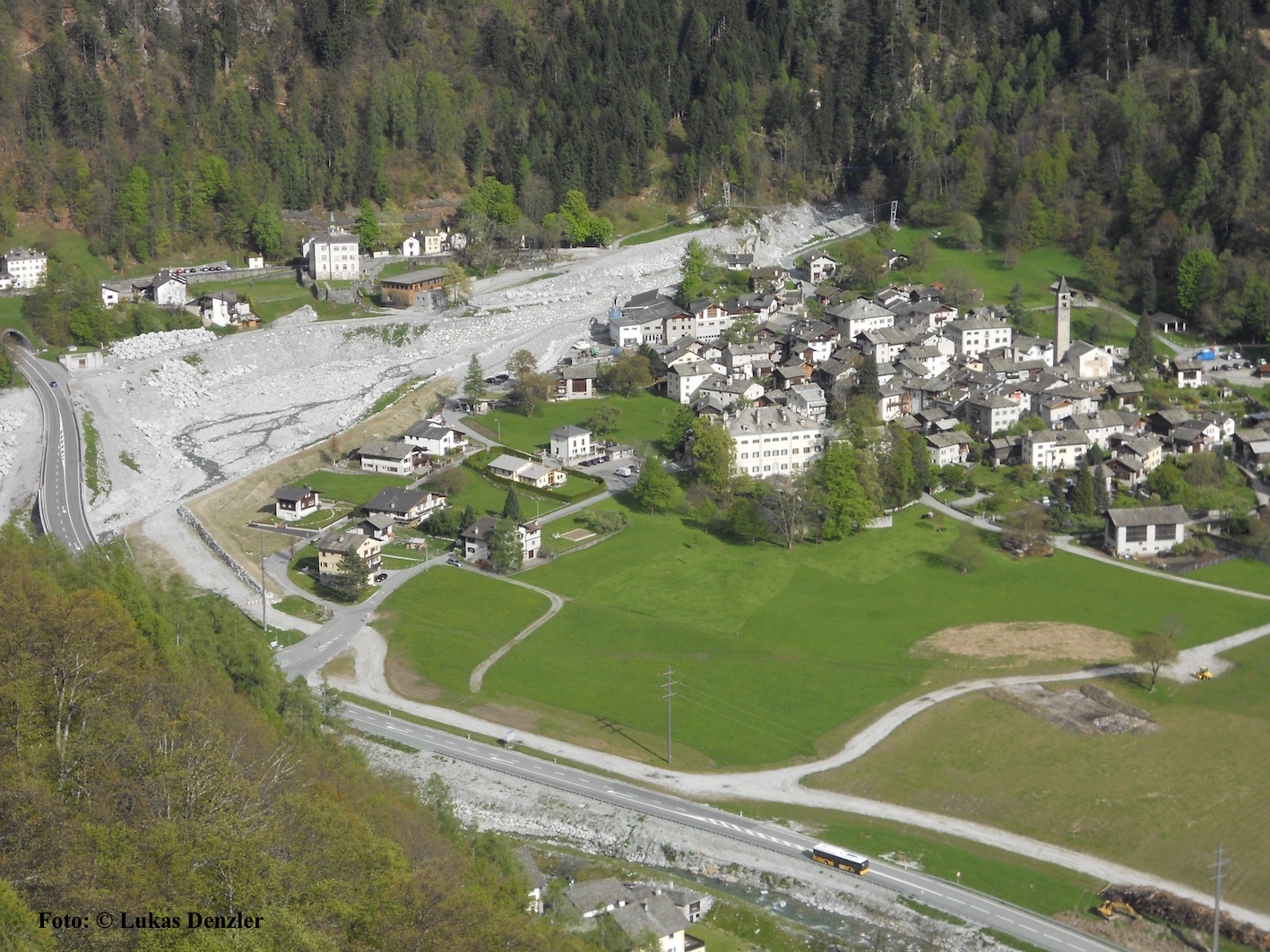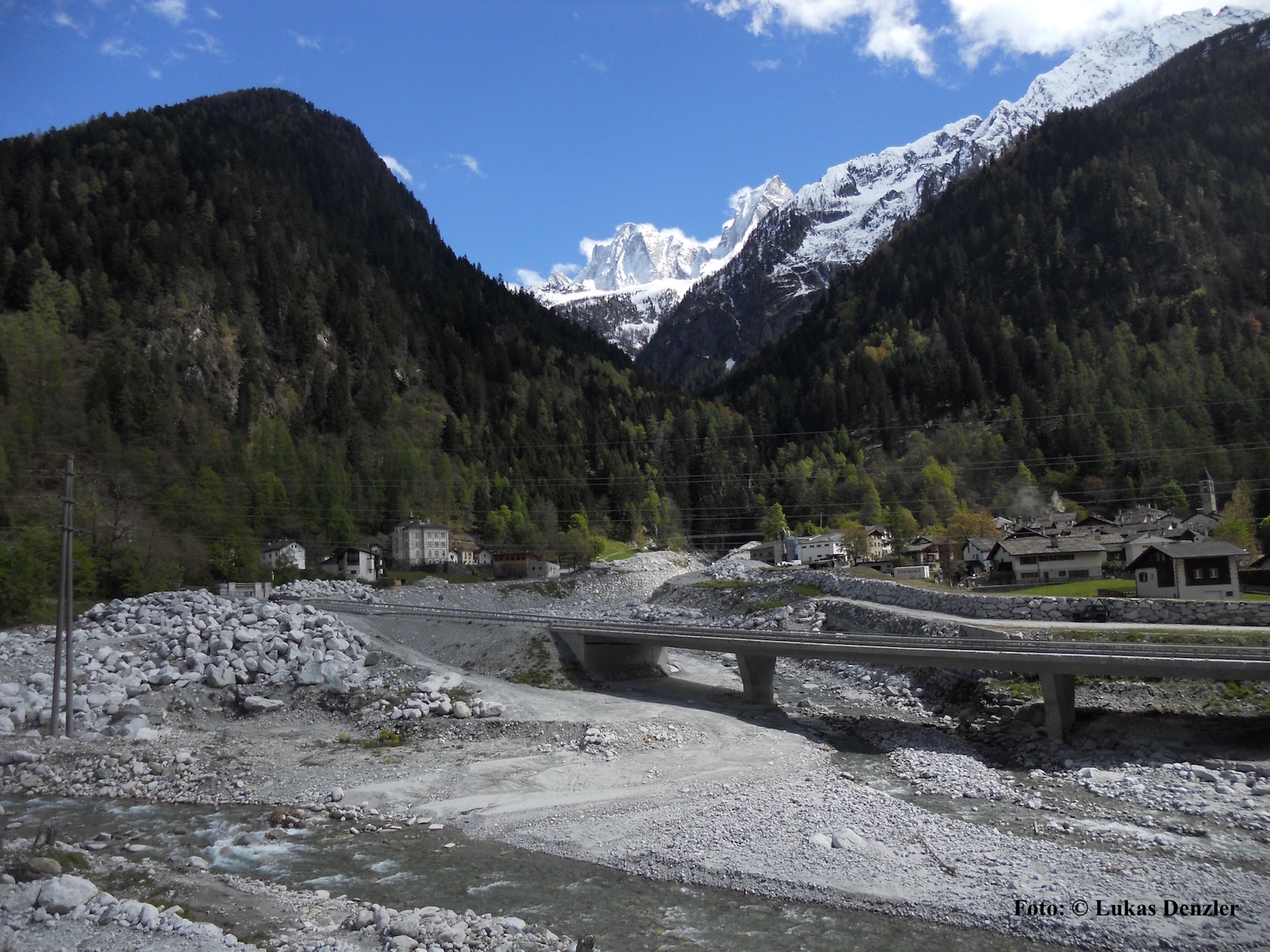 Einen wunderbaren Blick auf Bondo hat, wer den Wanderweg von Promontogno nach Soglio hochsteigt. Mit zunehmender Höhe schaut man auf den Talboden hinunter, sieht auf die grosse Deponie, in der das Cengalo-Material aus dem Auffangbecken aufgeschichtet wurde (Foto). Und von der Terrasse über dem Tal von Soglio blickt man hinüber zu den majestätischen Bergeller Bergen (Foto). In Soglio selber beeindruckt der Palazzo Salis. Und es gibt im schmucken Dorf auch noch einiges mehr zu entdecken (Foto). Doch die Welt steht nicht still: Weil mir der direkte Weg versperrt war (Foto), hätte ich fast das kleine Postauto nach Promontogno verpasst.