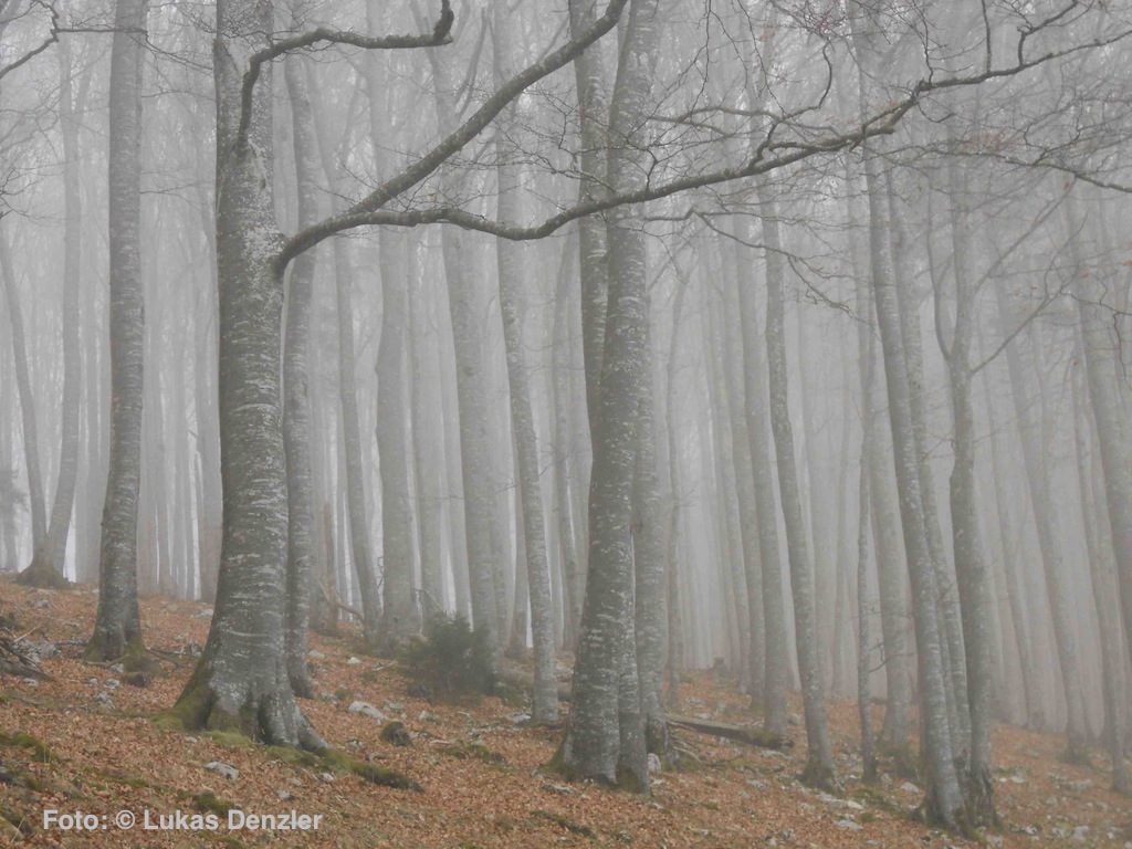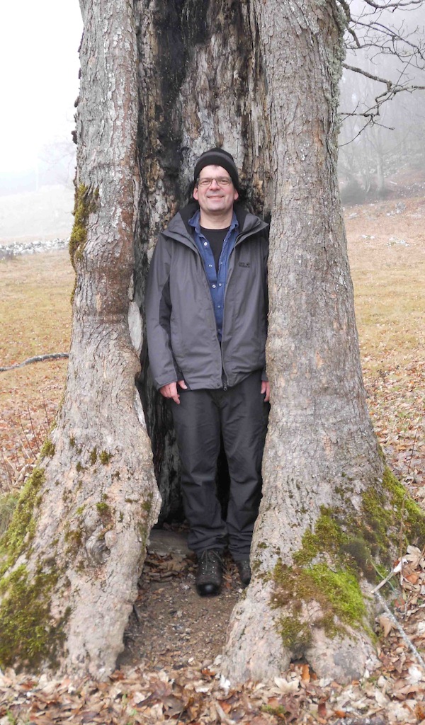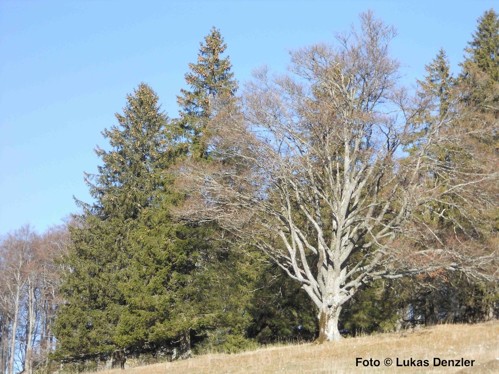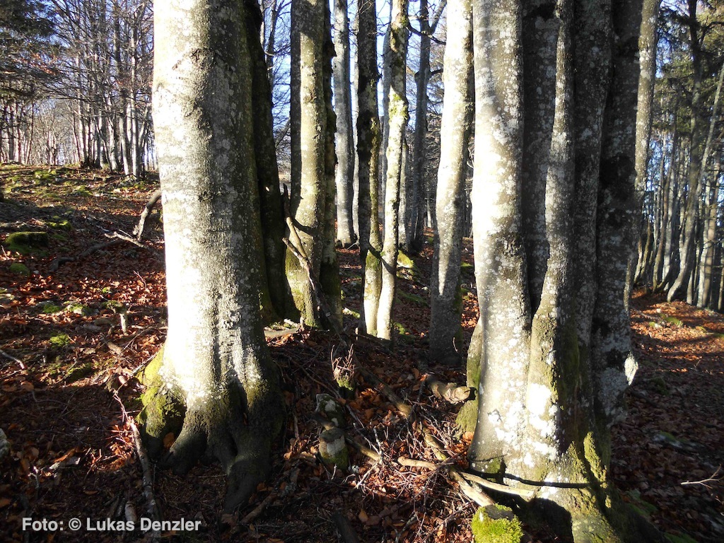 Auf allen Fotos sind Buchen zu sehen; einzig der Baum links mit dem hohlen Stamm ist ein Bergahorn. Marei Bollinger betätigte den Auslöser meiner Kamera. Herzlichen Dank! Mit dem Montoz und der Cabane La Rochette machte uns Hannes Suhner bekannt. Mit ihm war ich nun bereits zum zweiten Mal unterwegs.