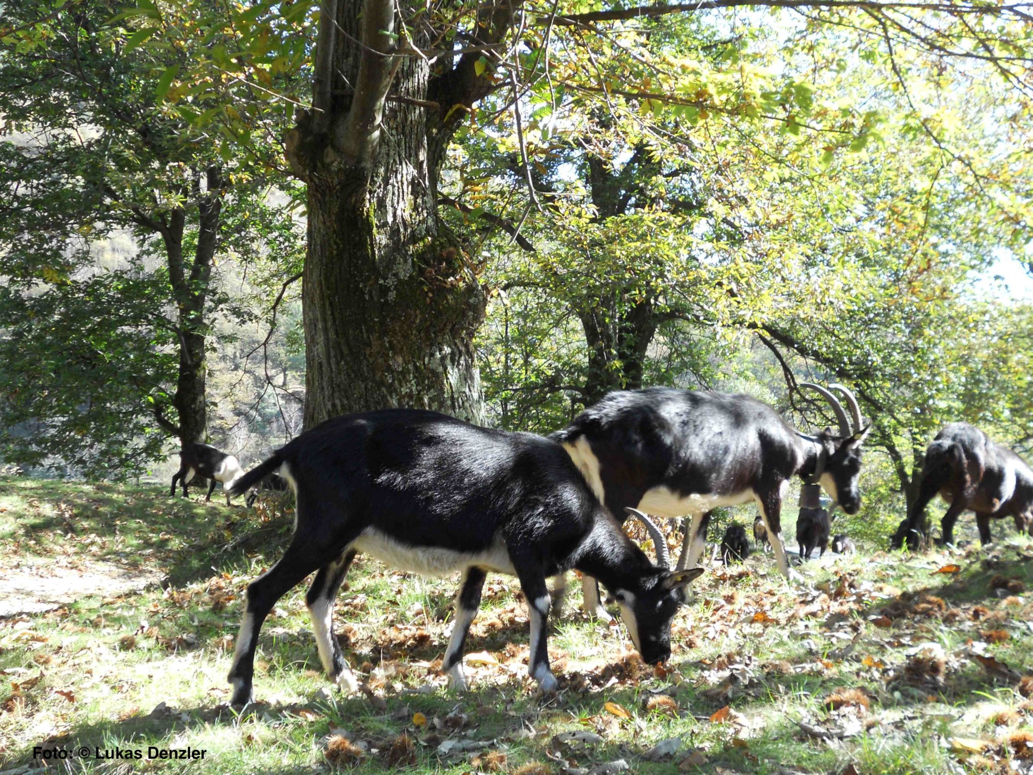 Carlo Scheggia sieht die grosse Herausforderung vor allem darin, dass die Kastanienselven auch in Zukunft regelmässig gepflegt werden. Diesbezüglich stimmt der Besuch einer Schulklasse in der Selve von Vezio im Anschluss an die kleine Feier des Fonds Landschaft Schweiz zuversichtlich. Die Schüler und Schülerinnen aus Cademario lauschten auf den «Schulbänken» im Freien vor dem Kastaniendörrhäuschen aufmerksam, was ihnen zwei ältere Einheimische erzählten. Und sie freuten sich an den Ziegen, die plötzlich Leben in die Selve brachten. Den Tieren, die dem Bauer Renzo Boschetti gehören, sah ich schon mit Begeisterung zu, als ich zum ersten Mal in dieser Selve war.